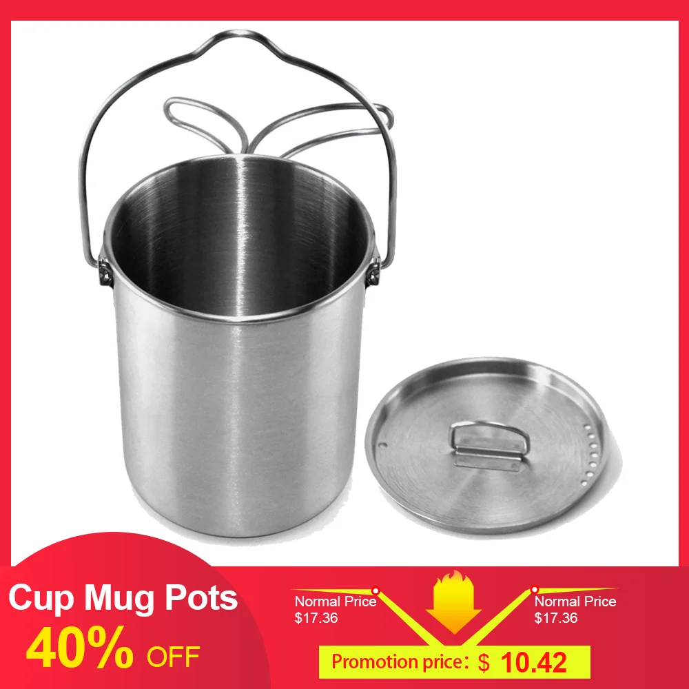 700 мл наружная кружка из нержавеющей стали кастрюли посуда Кемпинг чашка для пикника кружка для воды кофе чай с крышкой и складной ручкой