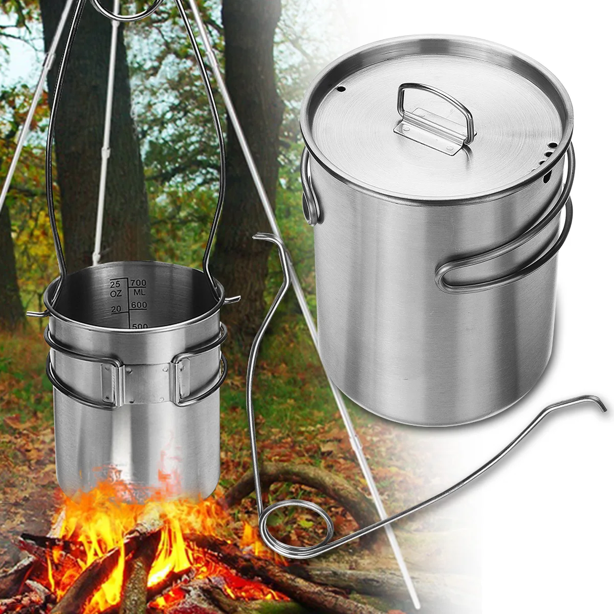 750 мл нержавеющая сталь горшок воды кружка чашка с крышкой и складная ручка Открытый Кемпинг горшок пособия по кулинарии горшки Пикник пове...
