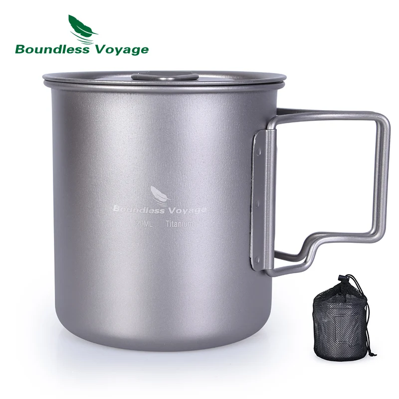 Boundless Voyage 420 мл титановая чашка для чая, чашка для воды, кружка для молока, кофе, складная ручка, посуда с крышкой для кемпинга, пикника на открытом воздухе