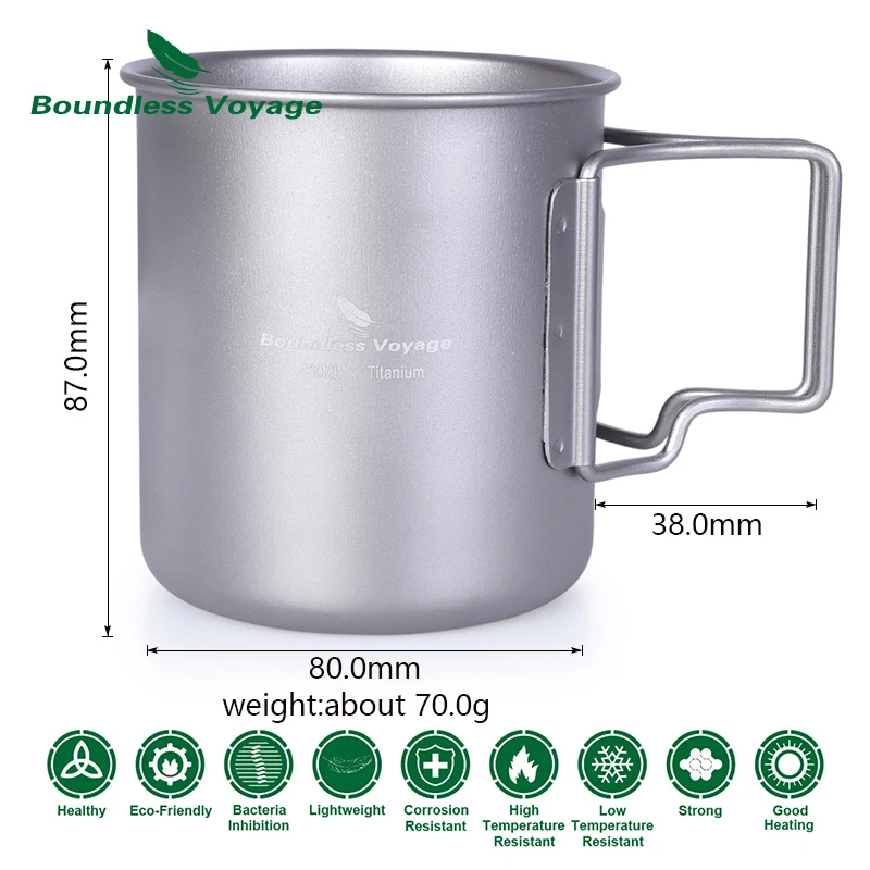 Boundless Voyage Титан чашки со складной ручкой открытая кемпинговая Вода Кружка посуда только 72 г 14,3 унц./420 мл
