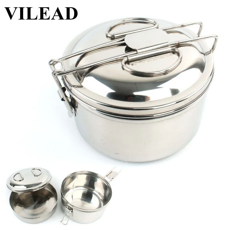 Посуда VILEAD из нержавеющей стали для кемпинга, пикника, набор кастрюль, походная посуда, набор для приготовления пищи, портативные приборы