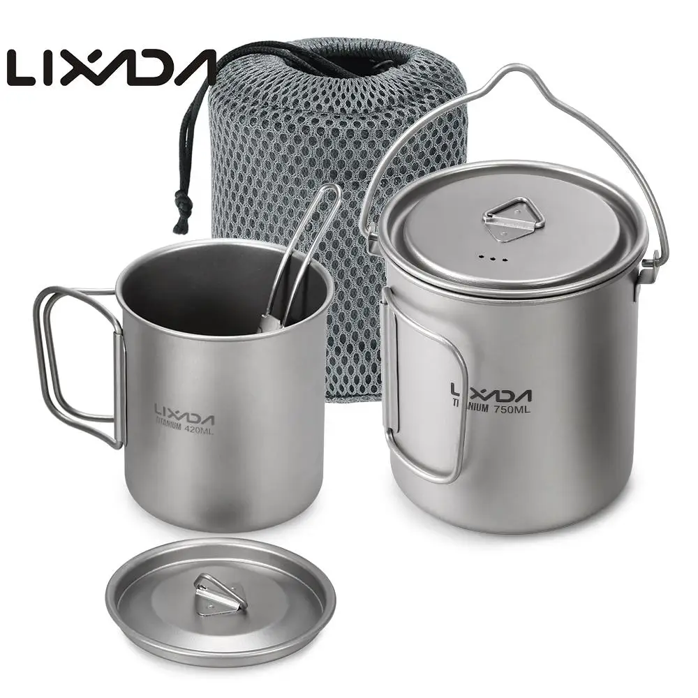 Lixada открытый титан посуда 420 мл горшок 750 воды чашку мл с крышкой Ручка Складной Spork для кемпинга Пикник пеший Туризм Путешествия