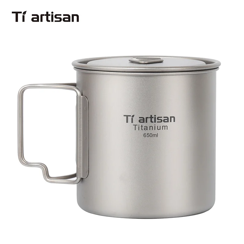 Tiartisan Открытый отдых чистый титан кружка с сложенной ручкой легкий портативный Пикник Cookingware 650 мл горшок Ta8312Ti