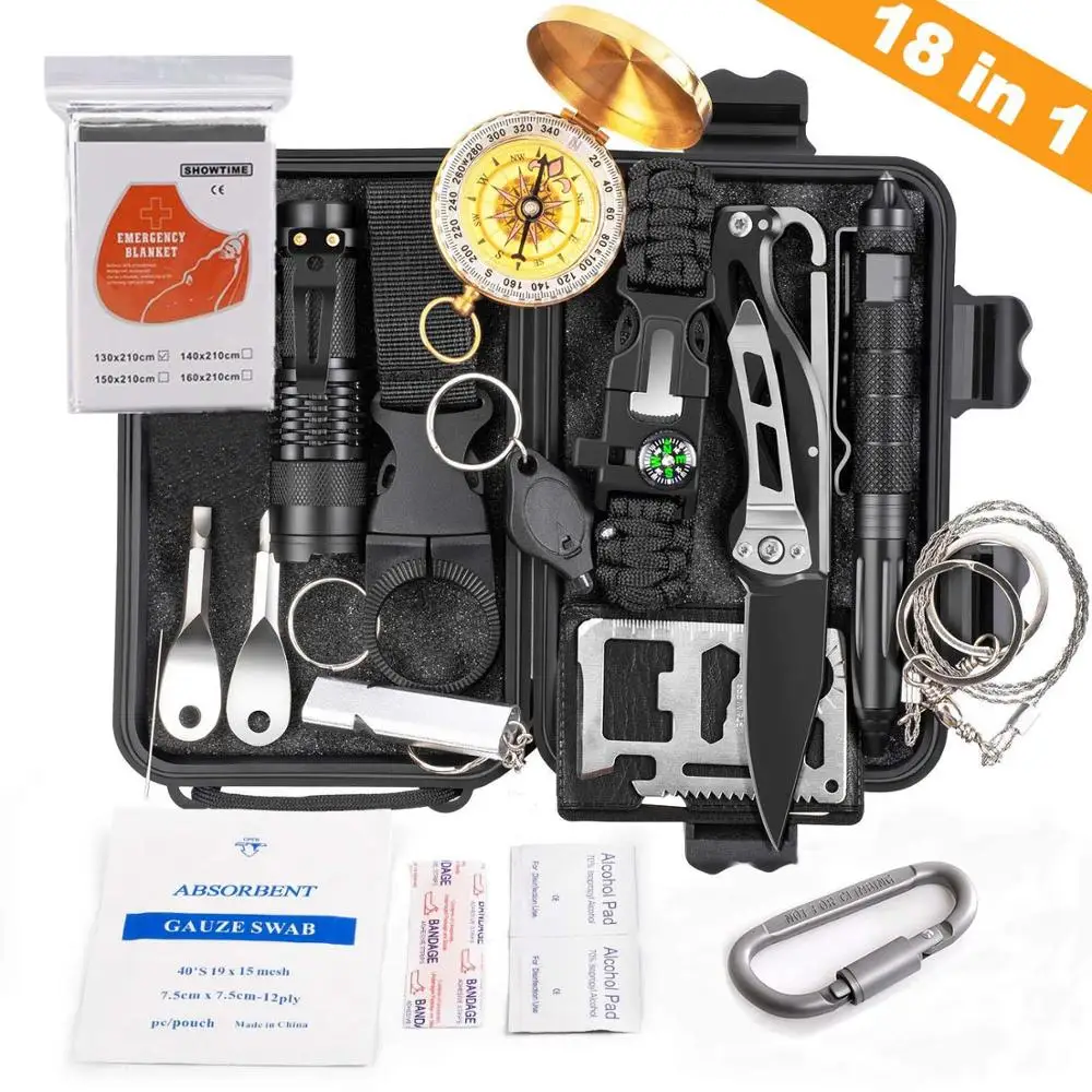18 в 1 набор для выживания на открытом воздухе, набор для кемпинга, путешествий, многофункциональное тактическое оборудование для защиты, пер...