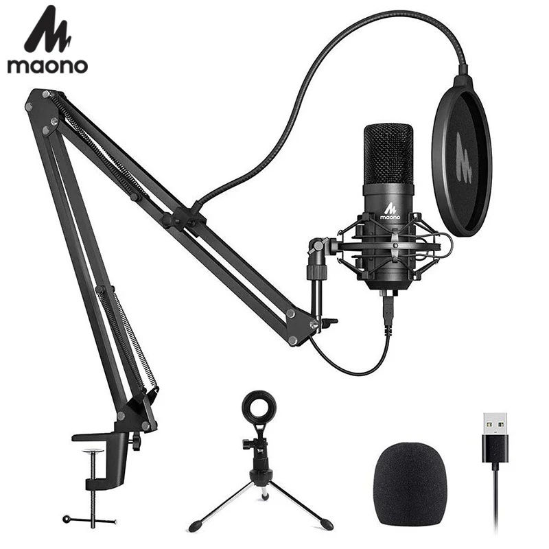 MAONO USB микрофон Подкаст конденсаторный микрофон 192 кГц/24 бит профессиональный микрофон с штативом Стенд для компьютера Youtube