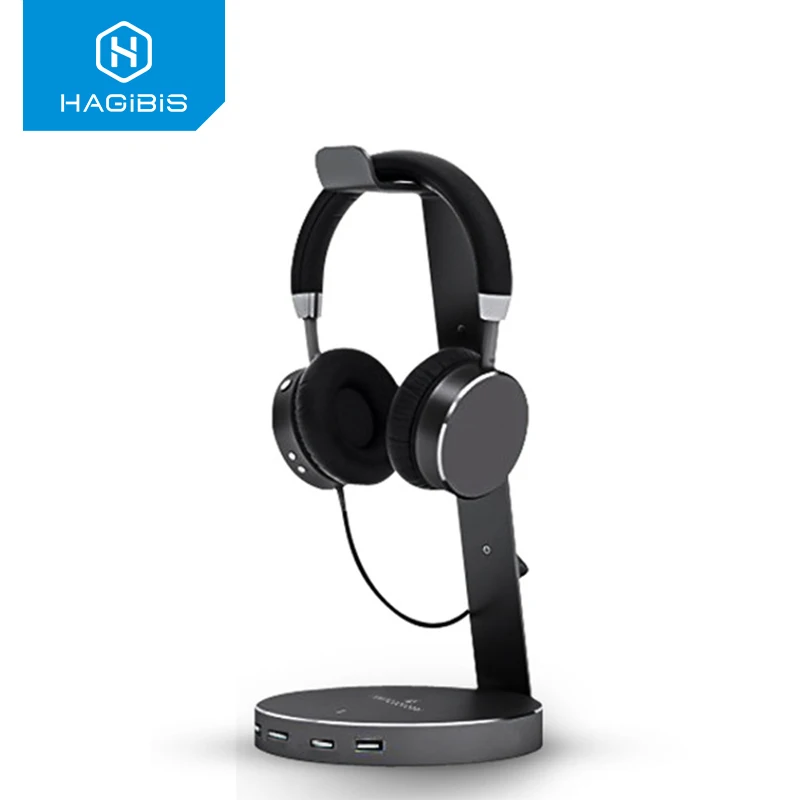 Hagibis USB 3,0 наушники вешалка гарнитура подставка для наушников Держатель с 4 портами 3,0 Usb концентратор дисплей для наушников кабель хранения