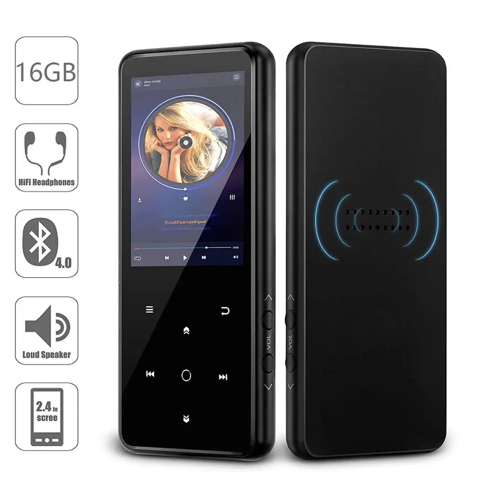 MP4 плеер Bluetooth 16 ГБ Встроенный динамик сенсорный ключ с 2,4 дюйма большой HD Экран FM радио, Регистраторы suppoers SD карты до 64 ГБ