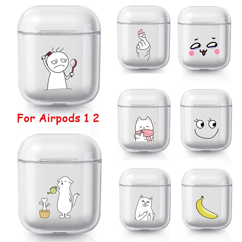 Прозрачные чехлы для Airpods, милые Мультяшные наушники, Жесткий Чехол для ПК, Air Pods 1 2, сумка для funda airpods 1, чехол Coque