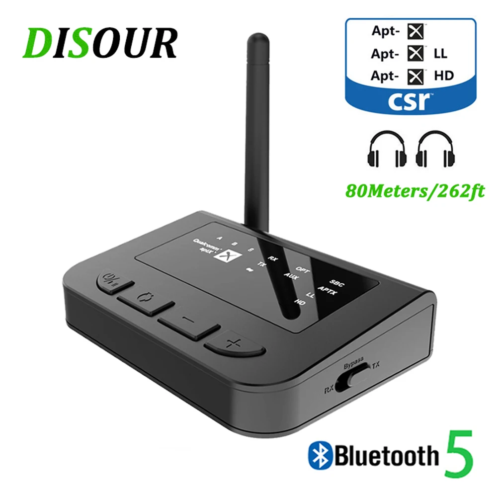 262ft/80m большой диапазон Bluetooth 5,0 передатчик приемник 3 в 1 беспроводной аудио адаптер с низкой задержкой aptX HD Spdif RCA AUX 3,5 мм ТВ