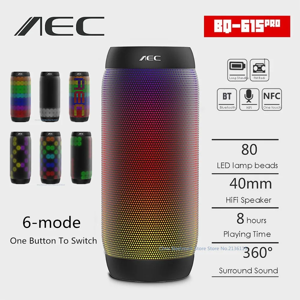 AEC красочный водонепроницаемый светодиодный светильник портативный Bluetooth динамик BQ-615 Pro беспроводной супер бас мини динамик мигающий свети...