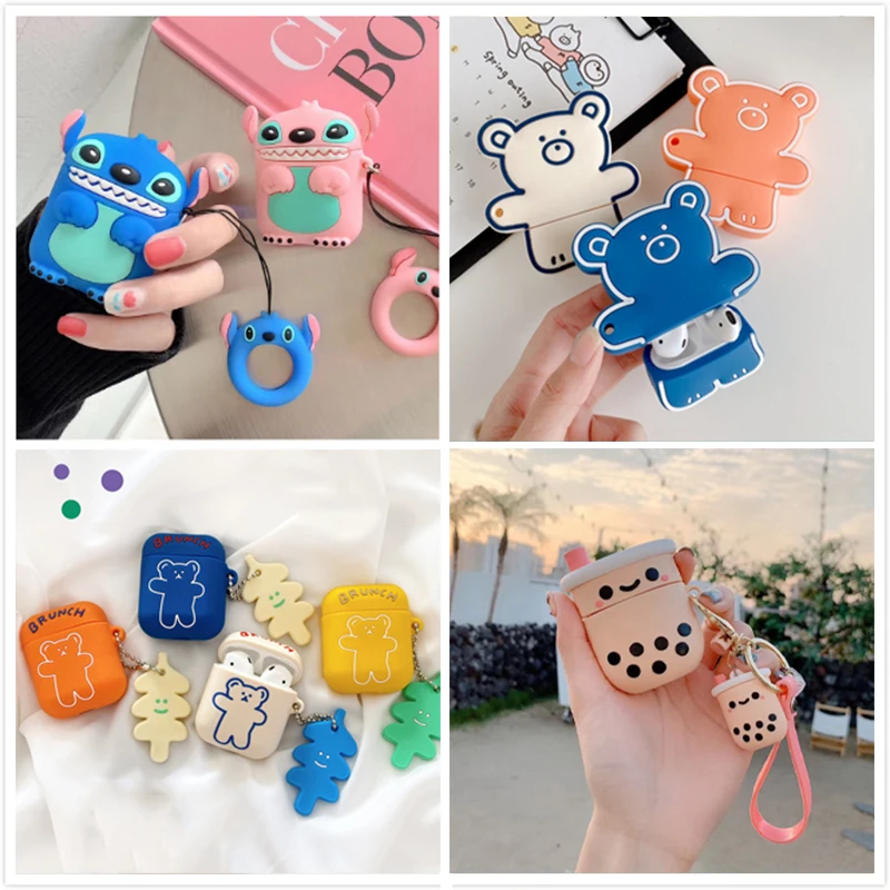 Для Airpods 2 чехол мультфильм силиконовый чехол для Airpods 1 кожухи головных телефонов кольцо ремешок защитный чехол для наушников для Airpods Box
