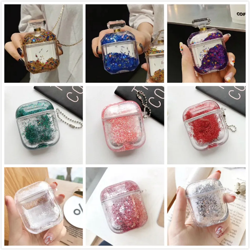 3D Жидкий чехол для наушников Apple Airpods 2 Чехол Блестящий песок чехол для Air pods чехол для наушников шикарный ремешок