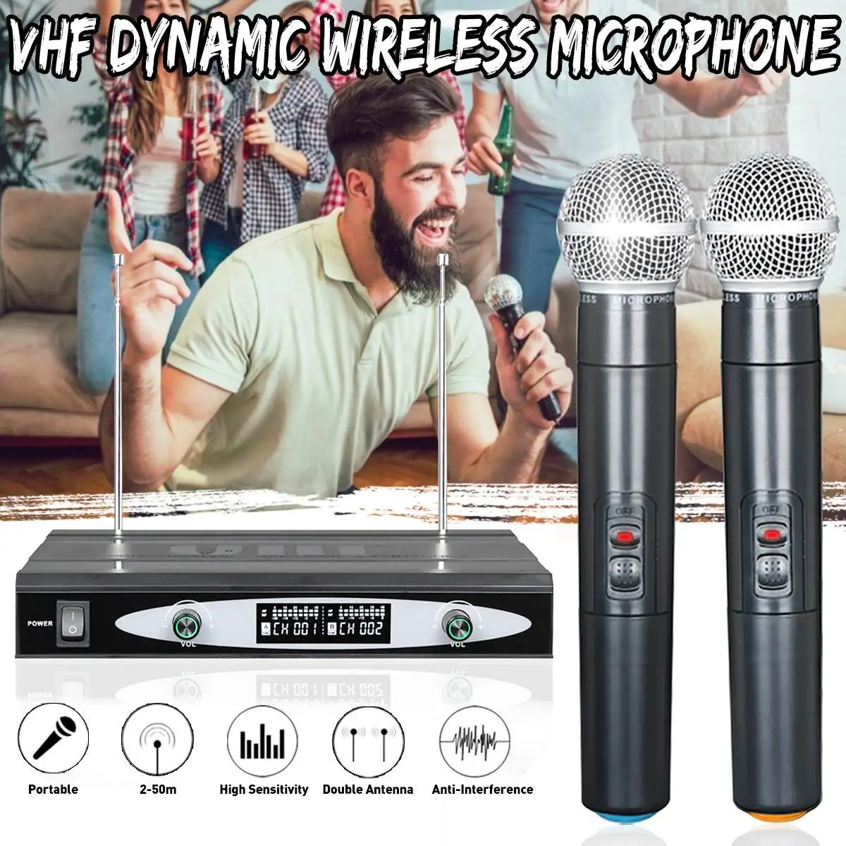 110 V-220 V беспроводной VHF микрофон 2 портатичный цифровой осциллограф беспроводной микрофон Системы + приемник домашний комплект караоке пода...
