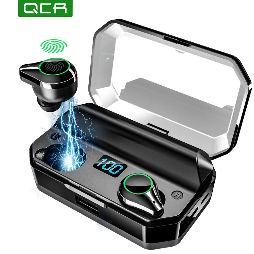 QCR 5,0 TWS Bluetooth наушники 9D стерео HiFi беспроводные наушники IPX7 водонепроницаемый 7000 мАч Внешний аккумулятор с микрофоном сенсорной клавишей