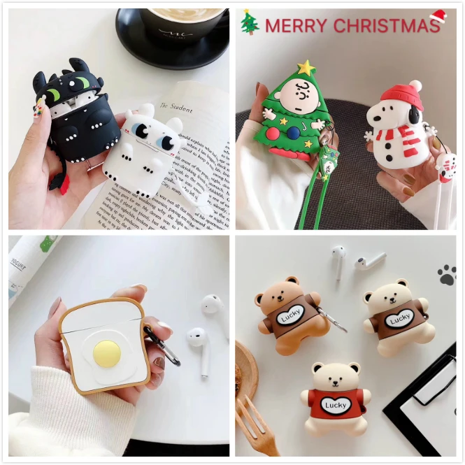 Чехол для наушников для Airpods, чехол с рождественской елкой для Apple Air pods 2, чехол s, силиконовый чехол для наушников с медведем для Earpods
