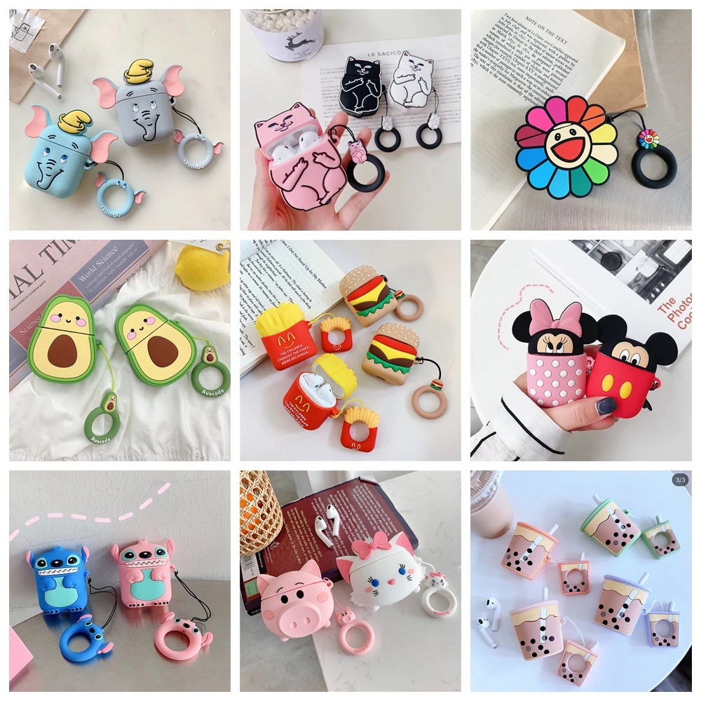 Чехол для наушников с 3D изображением русалки для Airpods 2, силиконовый чехол для наушников с изображением утки для Apple Air pods, чехол для наушников...