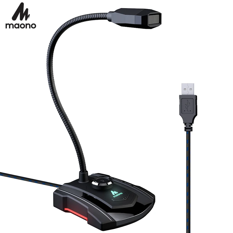 MAONO GM31 USB гусиная шея игровой микрофон Omnidirectionnel Studio Microfono настольный компьютер профессиональный светодиодный микрофон для ПК ноутбука