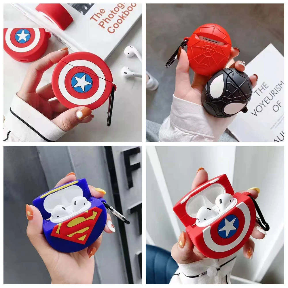 Силиконовый чехол Marvel, Супермен, Человек-паук, для Apple Airpods, беспроводные Bluetooth наушники, чехол для наушников, чехол Капитан Америка