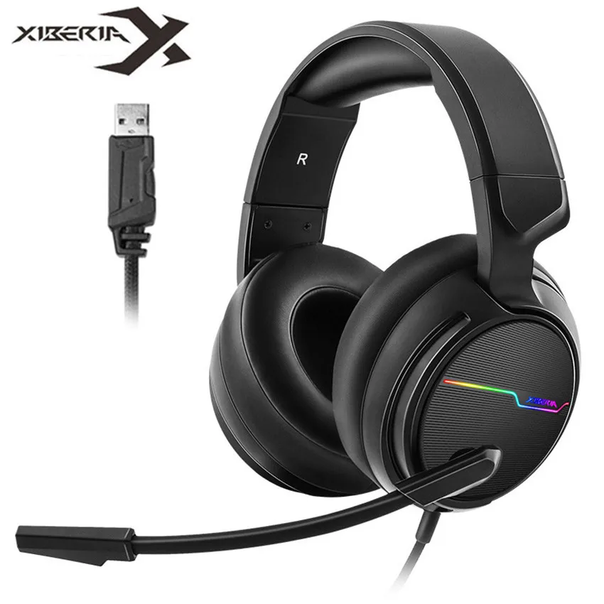 Xiberia V20 USB 7,1 Surround Sound Headset Игровые наушники бас для компьютера Тетрадь портативных ПК геймер наушники с микрофоном светодиодный