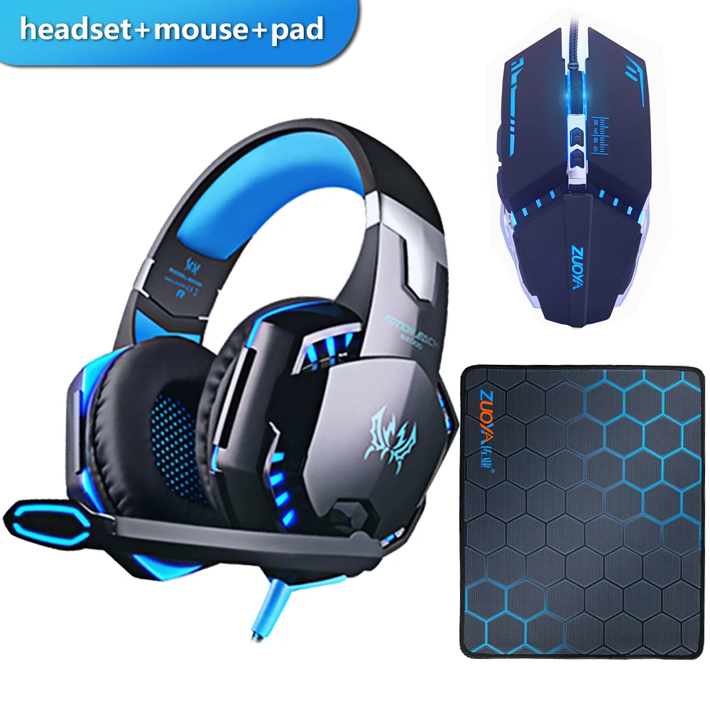 Игровые наушники, головной гарнитур с микрофоном стерео наушники + игровая мышь Мыши Проводные USB оптические для ПК + игровой коврик для копь...