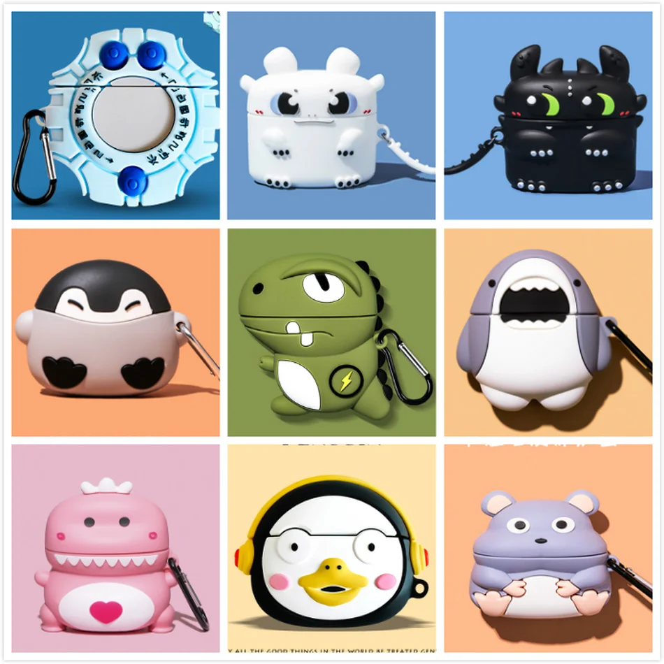 3D мультфильм собака наушники чехол для Airpods Pro Чехол Силиконовый вышивка динозавр Earpods чехол для Apple Air pods Pro 3 Чехлы Брелок