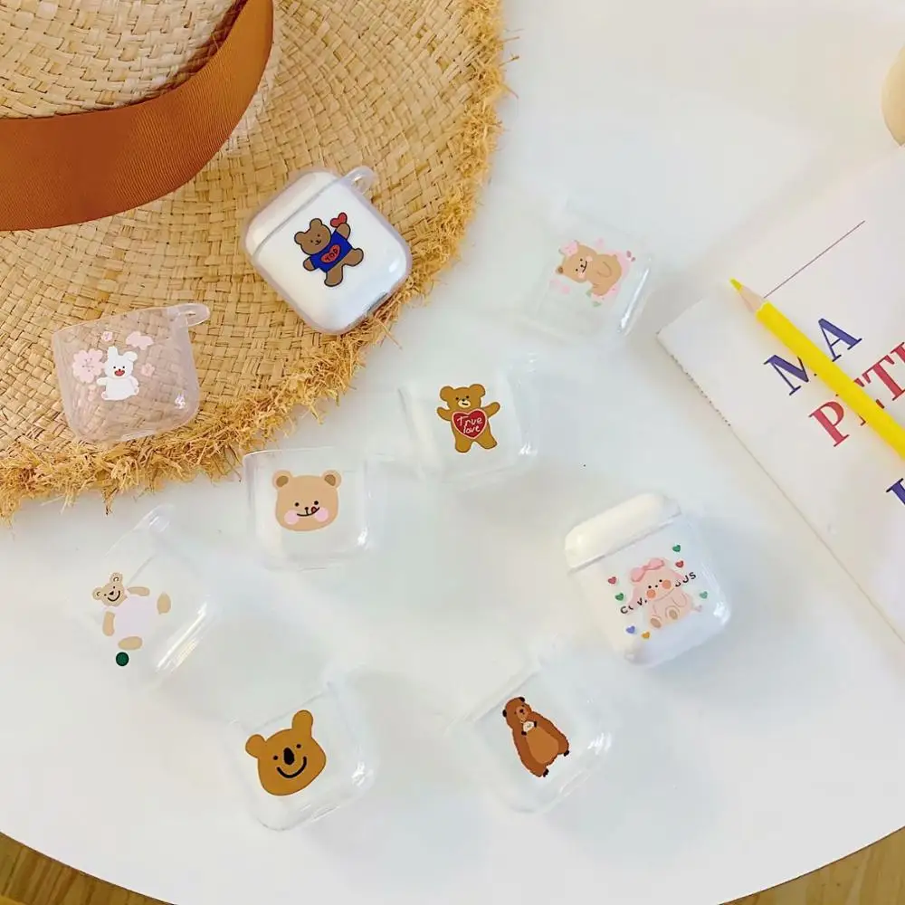 Для AirPods чехол с милым мультяшным медведем кроликом чехол для наушников s для Apple Airpods 2 ins стильный Забавный мягкий силиконовый защитный чехо...