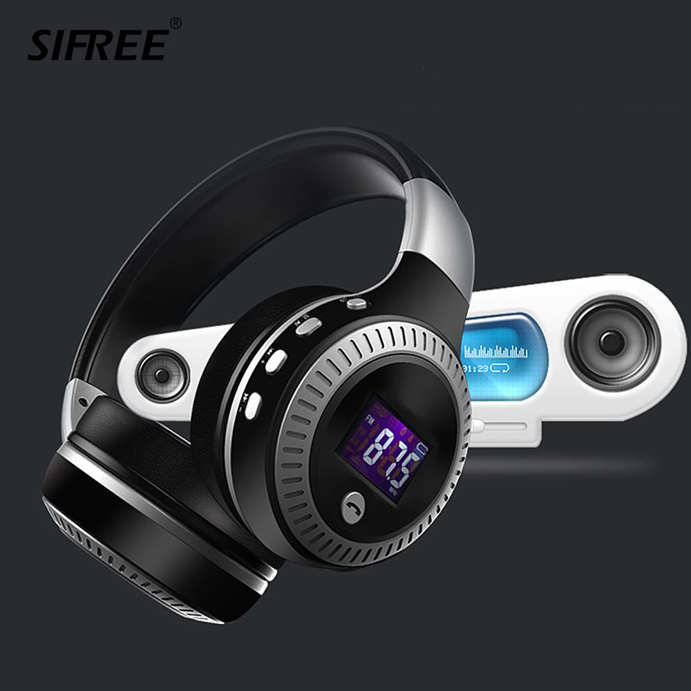 Беспроводные Bluetooth наушники стерео бас наушники с микрофоном FM радио TF карты воспроизведения ЖК-экран