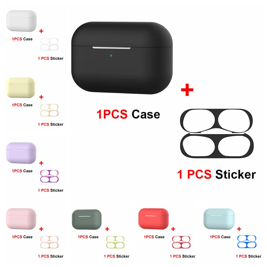 Для Airpods Pro 2 в 1 мягкий силиконовый чехол для наушников и пылезащитная металлическая наклейка защита от царапин для Apple Airpods Pro 2019