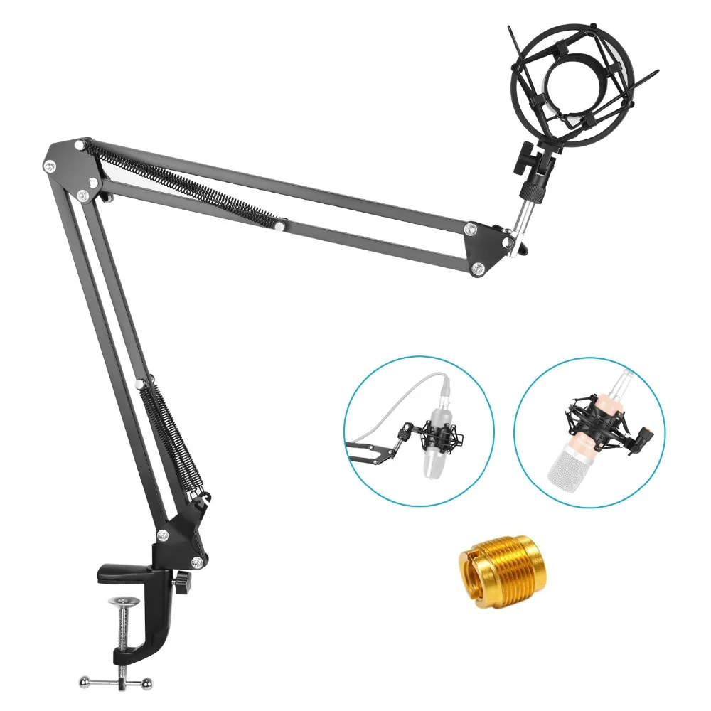Neewer регулируемый микрофон Подвеска стрелы Ножничные стенд с Универсальный амортизирующее крепление микрофона держатель для вещания