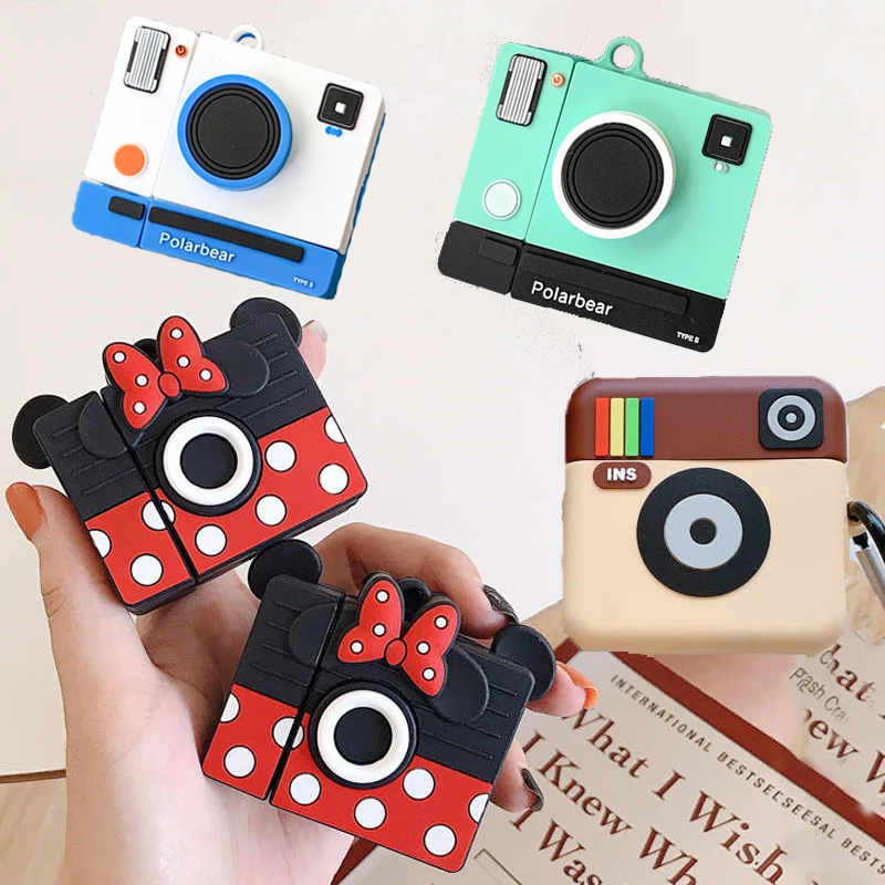 3D милый мультфильм Минни в форме камеры силиконовый наушник чехол для Apple Airpods 1 2 беспроводные наушники крышка наушники аксессуары