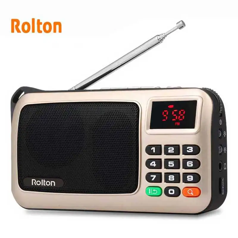 Rolton FM Портативный мини-рация плеера TF карты USB для ПК Телефон Ipod с светодиодный Дисплей и фонарик