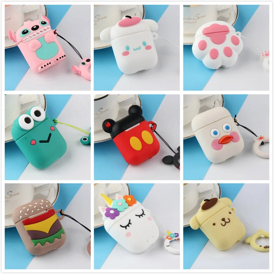 Беспроводной чехол для наушников для Airpods, силиконовый чехол с милым мультяшным медведем, котом, стежком, противоударный 3D чехол для наушников для Apple Air pods 2