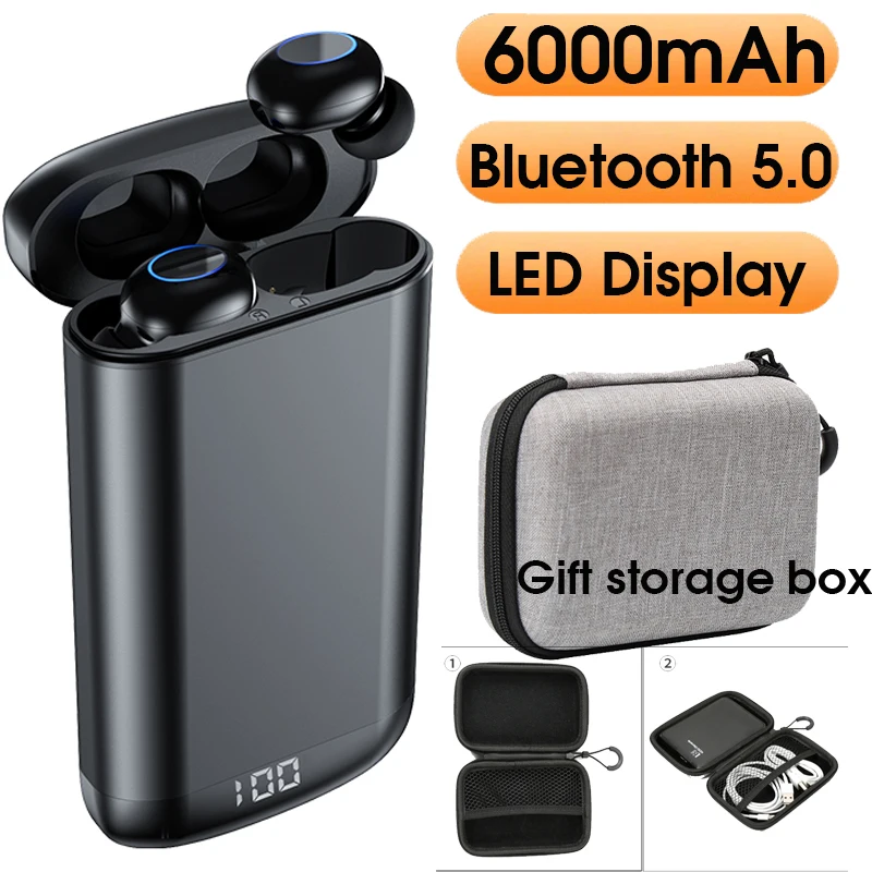 TWS с внешний аккумулятор блютуз беспроводные наушники 6000mAh наушникт беспроводние блютус Headphone безпроводные наушник спортивные наушники шумодавом с микрофоном чехол для наушников беспроводной гарнитура наушкини
