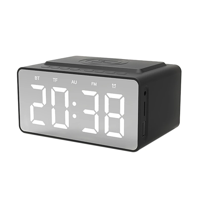 Беспроводное зарядное устройство, Bluetooth Сабвуфер, динамик, 2 будильника, usb зарядка, светодиодный, зеркальный, портативный, FM радио, яркость