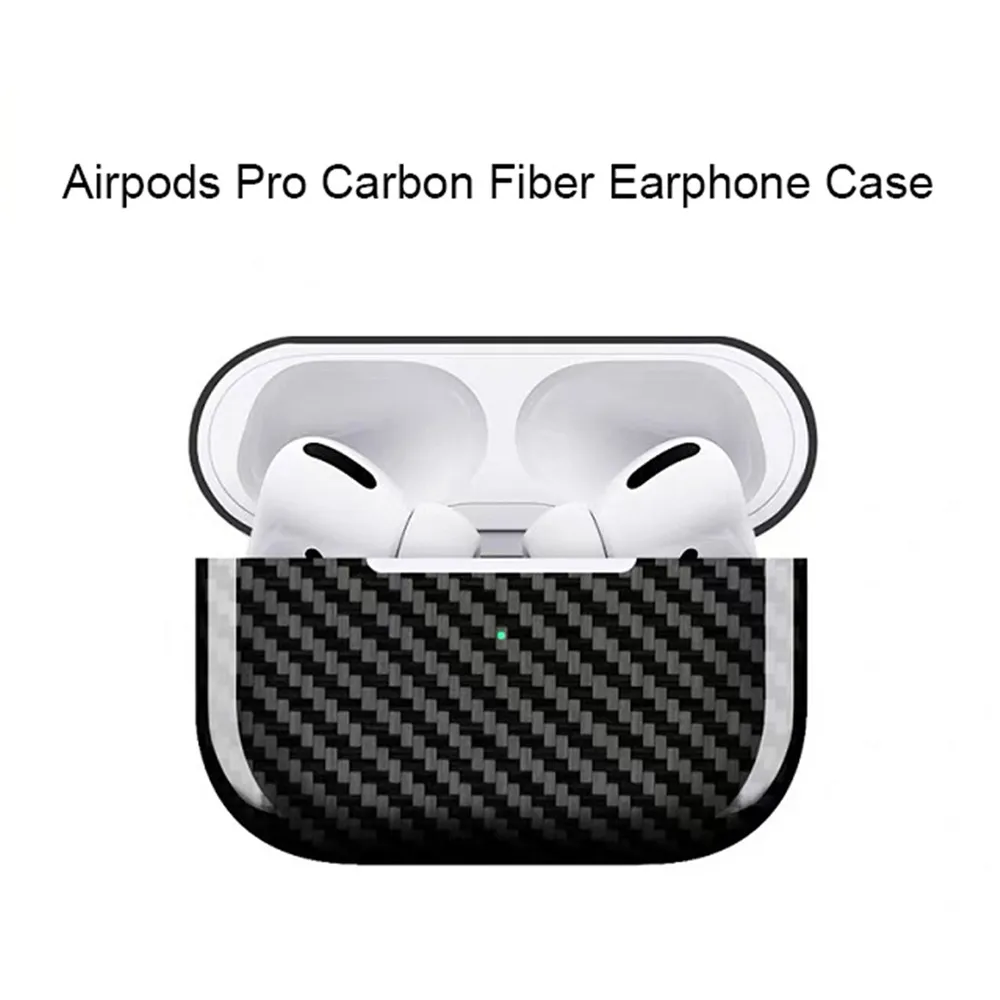 Чехол из углеродного волокна для AirPods Pro, беспроводной чехол для зарядки наушников из настоящего углеродного волокна, противоударный светод...
