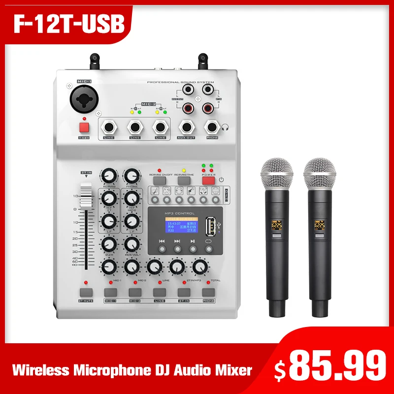 Чехлом F-12T-USB Беспроводной микрофон для караоке сцены DJ аудио микшер с Дисплей с 2 микрофон 48V Phantom Мощность