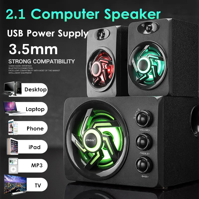 Мультимедийный 2,1 настольный компьютер динамик светодиодный светильник тяжелый бас сабвуфер USB источник питания для ПК ноутбук мобильный т...