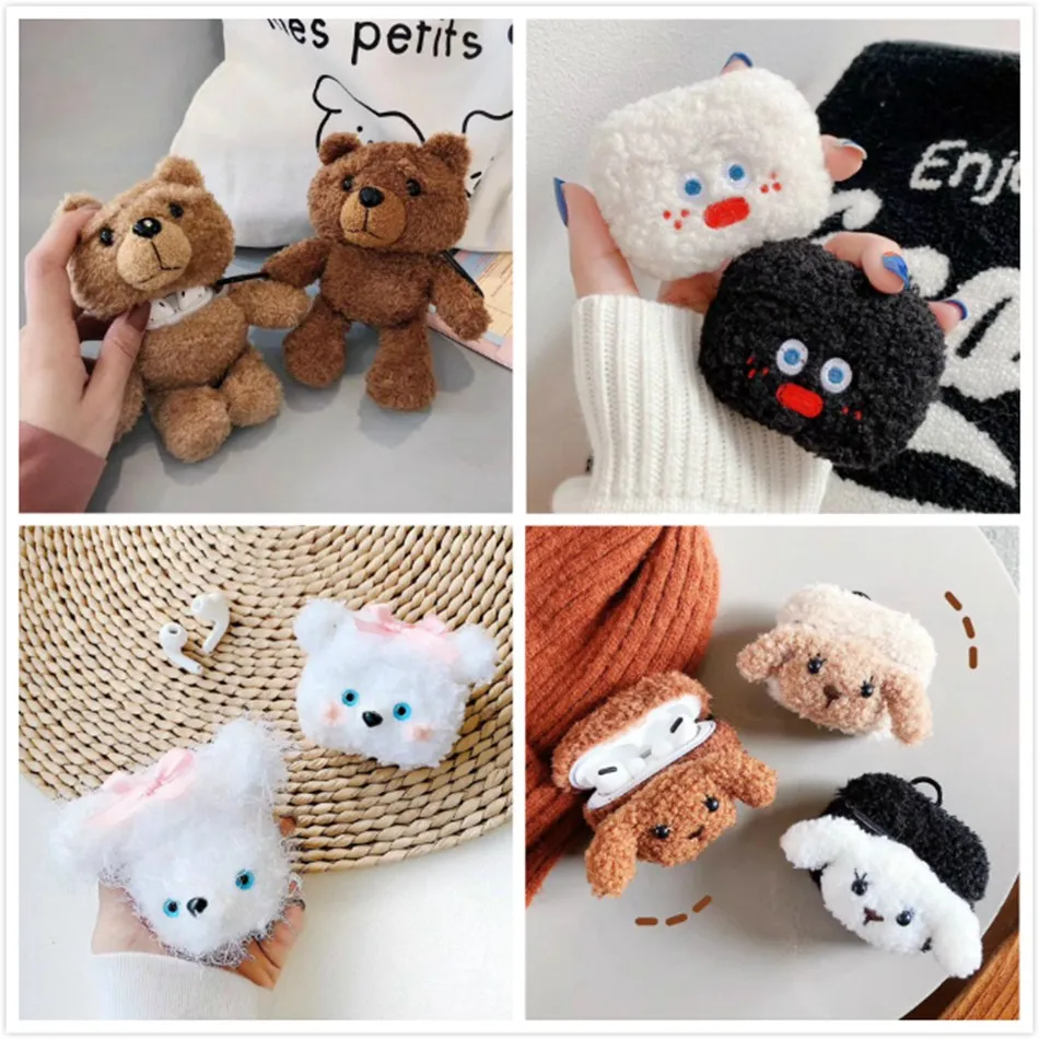 3D милый чехол для наушников для Airpods Pro Чехол мультяшный вязаный плюшевый чехол для Apple Airpods 3 Pro коричневый медведь Наушники Earpods чехол