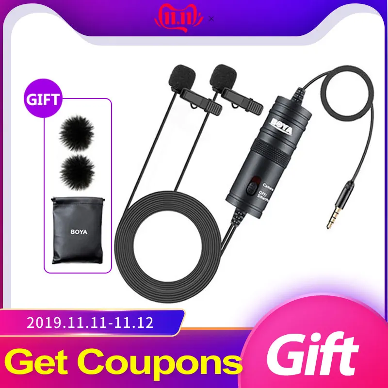 BOYA BY-M1DM двойной головкой Lavalier конденсаторный микрофон аудио запись для iPhone Android DSLR Canon Nikon видеокамера, Обновлено BY-M1