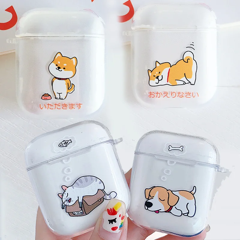 Милый мультфильм забавная собака кошка прозрачный мягкий ТПУ чехол для Apple Airpods 1/2 японский Шиба ину щенок Bluetooth беспроводные наушники крышк...