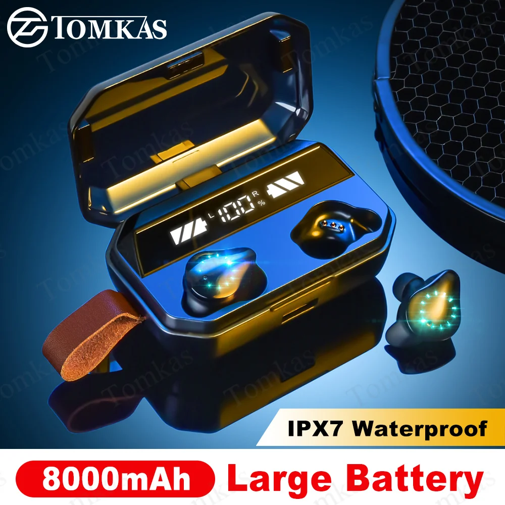 Беспроводные Bluetooth наушники TWS 8000 мАч, водонепроницаемые стереонаушники с светодиодный дисплеем, спортивные беспроводные наушники