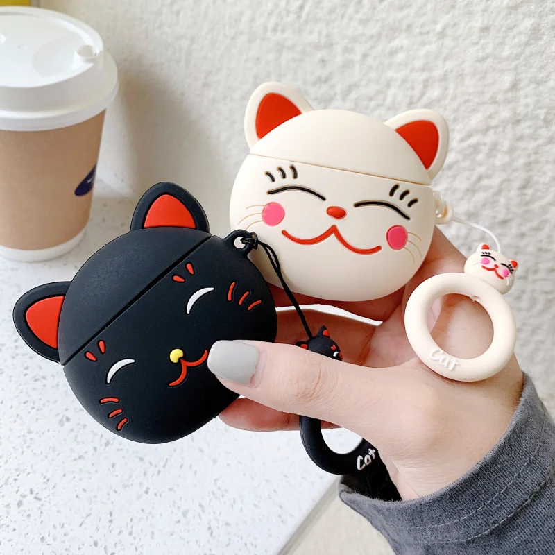 Мультяшные Милые 3D lucky cat для Apple беспроводные bluetooth-гарнитуры Чехлы для airpods 2 чехол силиконовый Ударопрочный Мягкий корпус кольцо пряжки кор...