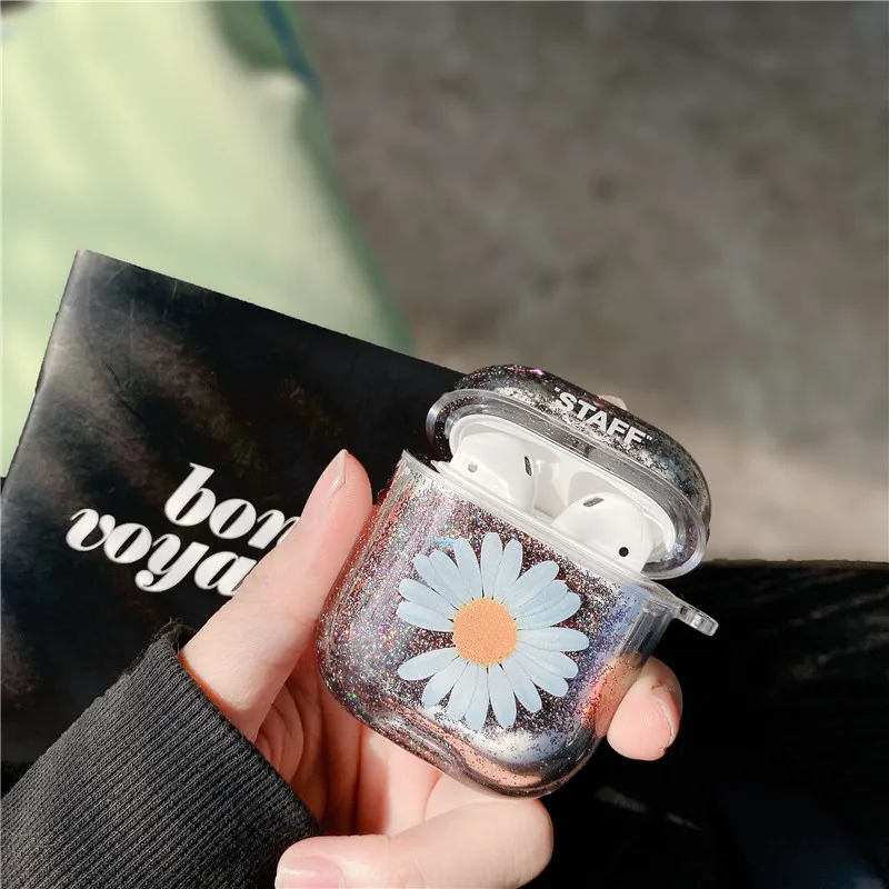 Чехол с блестящими жидкими зыбучими песками, беспроводные bluetooth-наушники Peaceminusone, чехол с ромашками для Airpods 2 1, защитный чехол