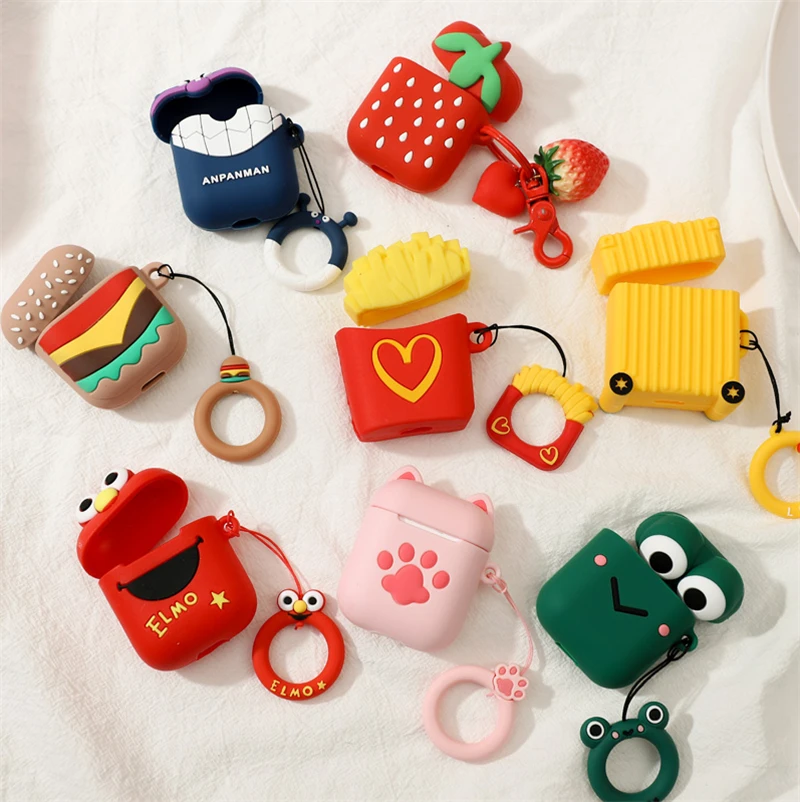 Чехол для AirPods с милым 3D рисунком из мультфильма, чехол для наушников для Apple Airpods 2, мягкий силиконовый защитный чехол с кольцом на палец