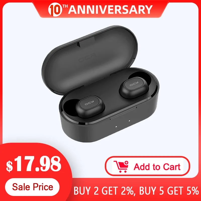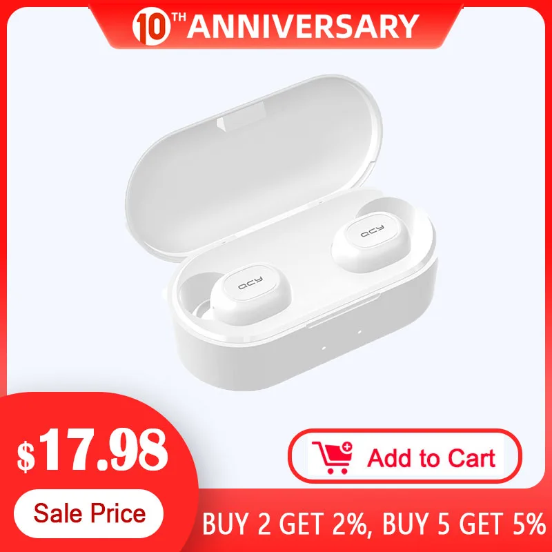 QCY QS2 TWS Bluetooth V5.0 наушники T1S 3D стерео Спортивные Беспроводные наушники с двойным микрофоном и зарядным устройством