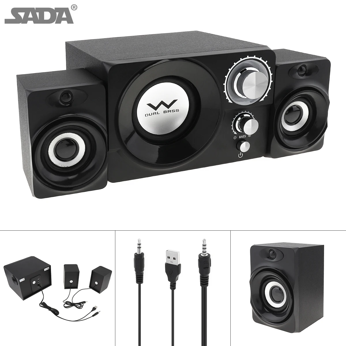 SADA S-20 2,1 мини черный 11 Вт деревянный сабвуфер Портативный музыкальный USB компьютерный динамик с 3,5 мм аудио разъемом для рабочего стола/телевизора/ПК/телефона