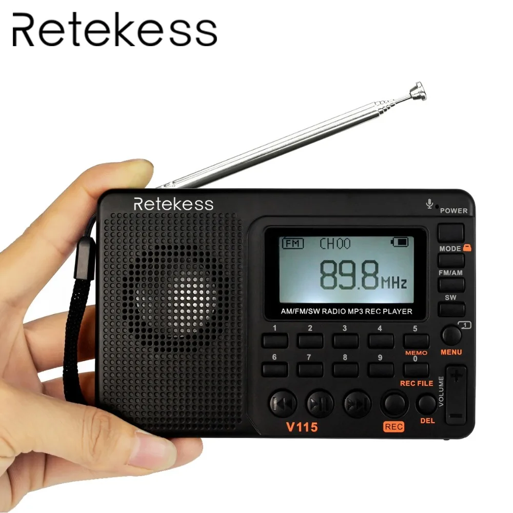 Tivdio V-115 Радио FM/AM/SW Мир группа приемника MP3-плееры rec Регистраторы с таймер сна черный fm Радио регистраторы F9205A