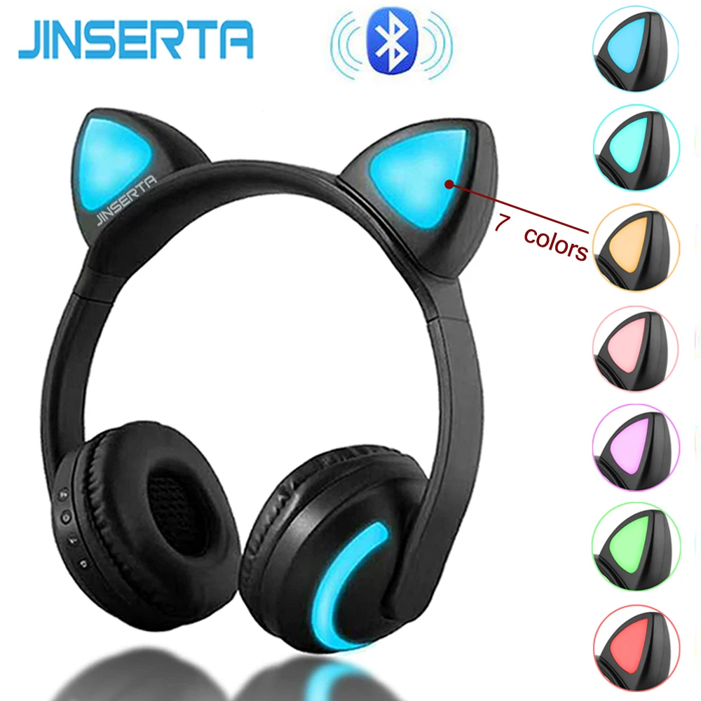 Беспроводные наушники JINSERTA с Bluetooth и кошачьими ушами, светодиодный светящийся свет, маскарадные наушники для косплея, подарки