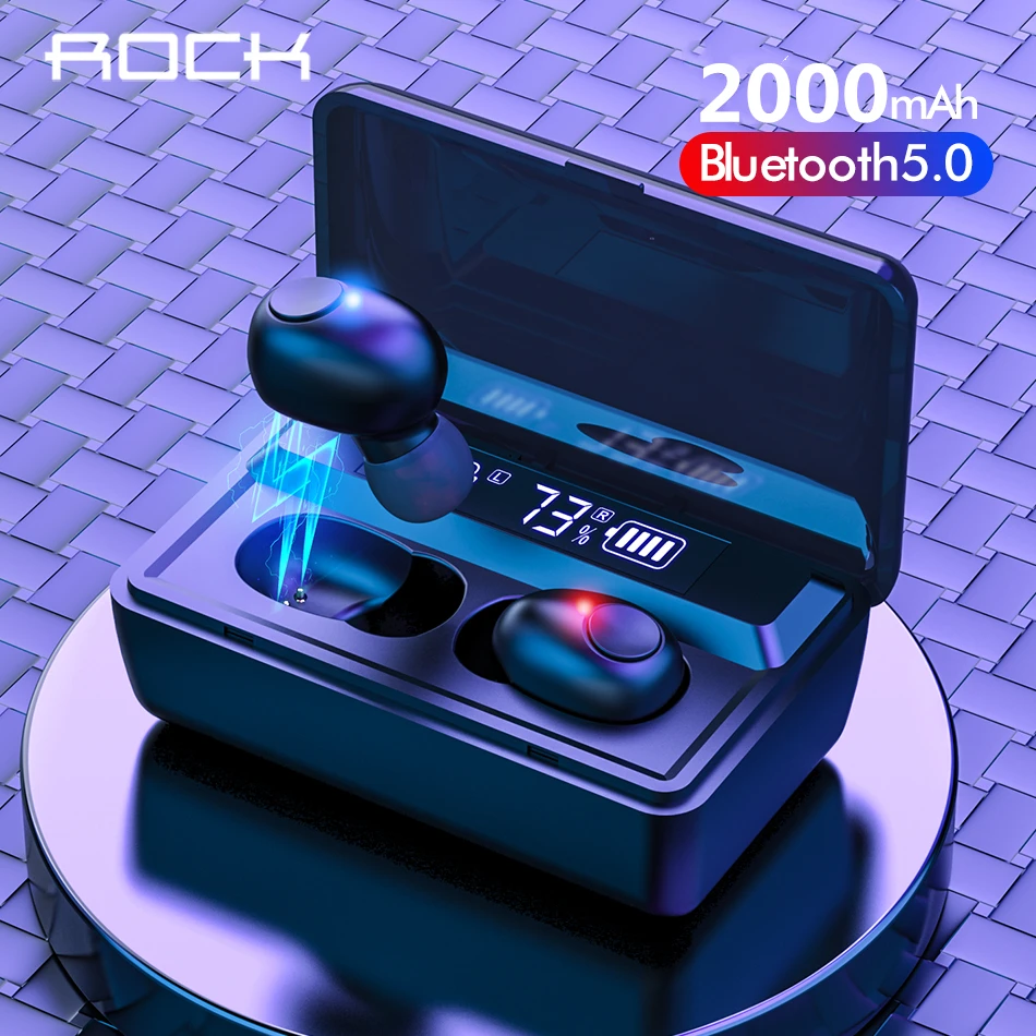 ROCK Bluetooth 5,0 TWS беспроводные Bluetooth наушники 8D Hi-Fi стерео спортивные с микрофоном 2000 мАч светодиодный дисплей внешний аккумулятор зарядная коробка