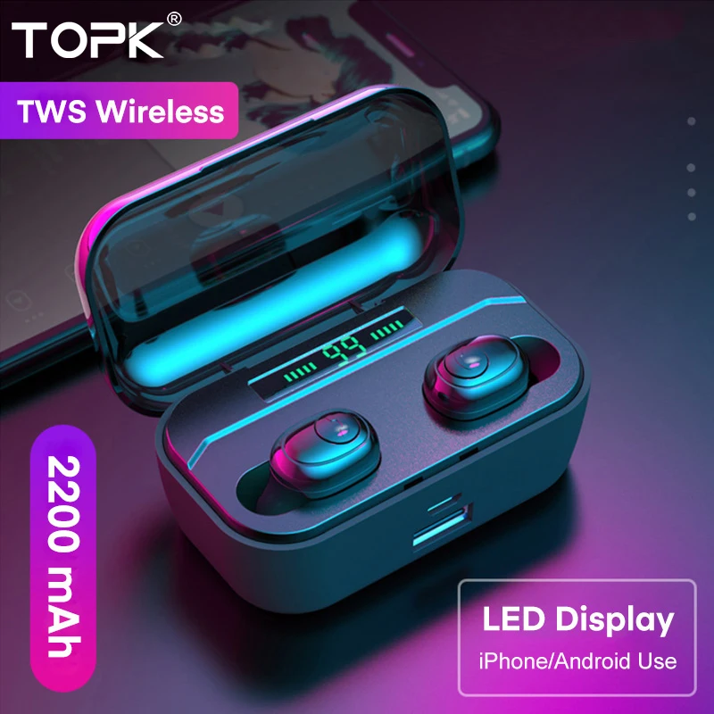 TOPK TWS Bluetooth 5,0 наушники HD стерео с шумоподавлением Игровые наушники Handsfree Наушники вкладыши